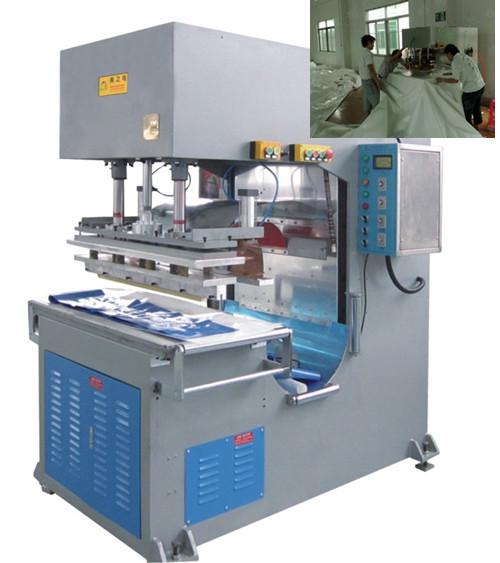 答:首先,需要人工進(jìn)行輔助放料,就是人工手動(dòng)放膜材,然后人工操作、啟動(dòng)機(jī)器,機(jī)頭下降高頻焊接定型,最后焊接完成之后,機(jī)頭升起,人工手動(dòng)取料,產(chǎn)品自動(dòng)成型。